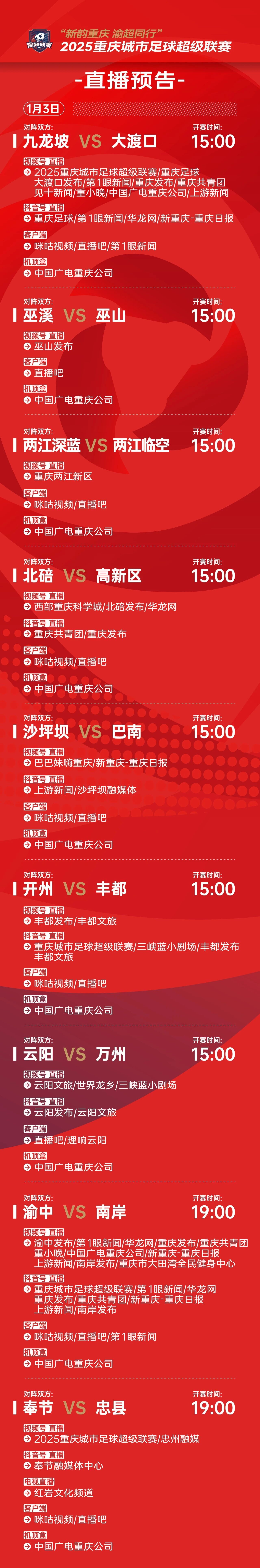 直播预告 | 2025重庆城市足球超级联赛(1.3)