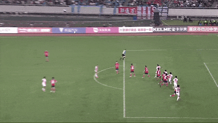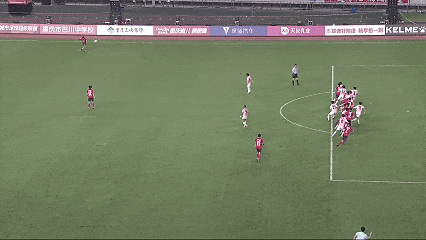 第38分钟,两江临空队获得任意球机会,8号球员谢杰门前机警左脚补射,1:0!