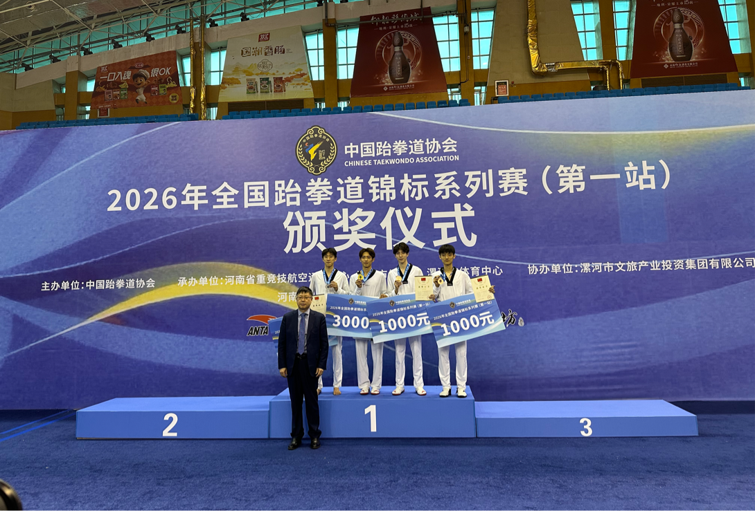 近日,2026年全国跆拳道锦标系列赛(第一站)在河南漯河举行。市运动技术学院运动员周希翱勇夺男子58kg级金牌,徐文博获得男子58kg级铜牌,李立涪获得男子68kg级铜牌,刘贵成获得80kg级第五名。