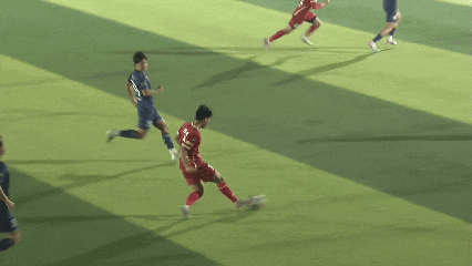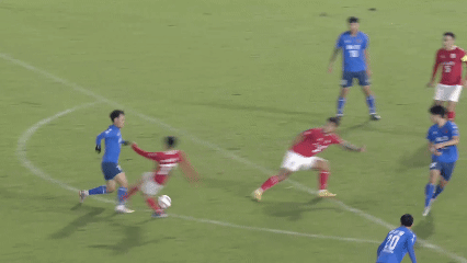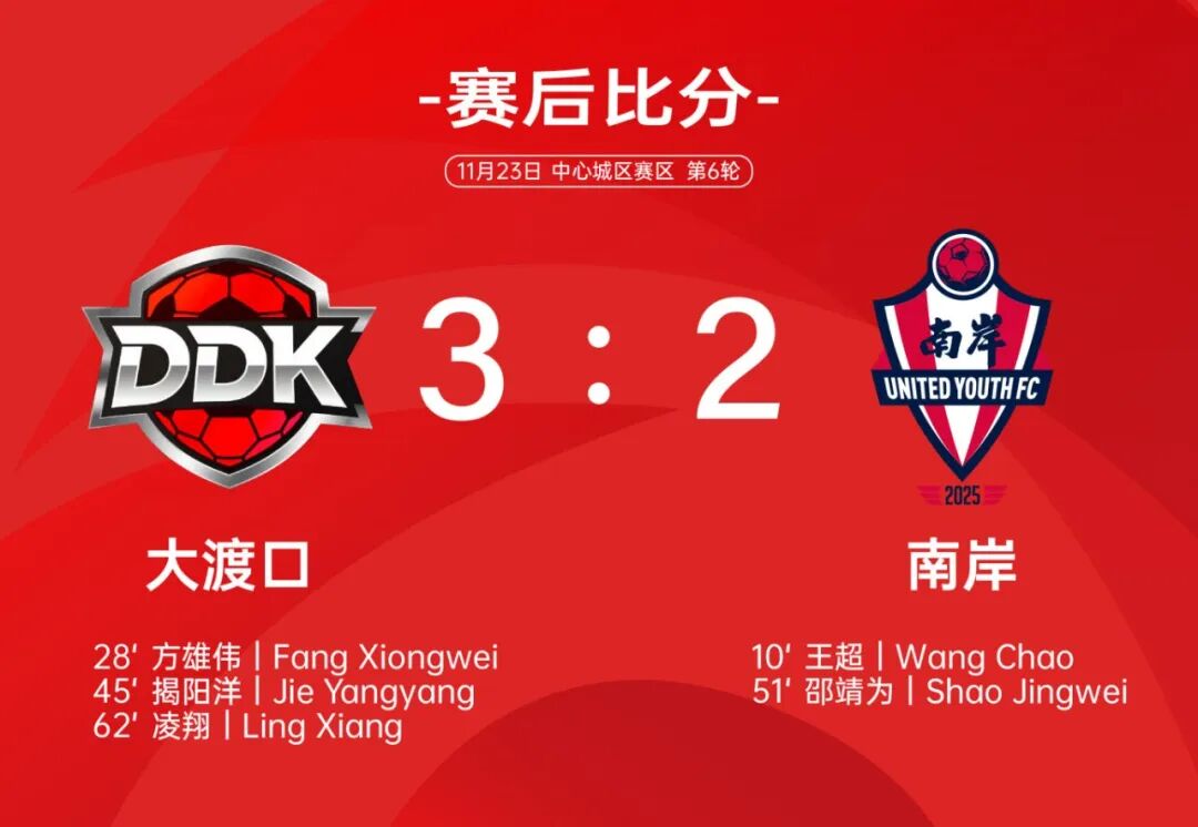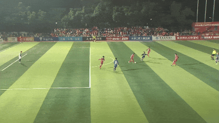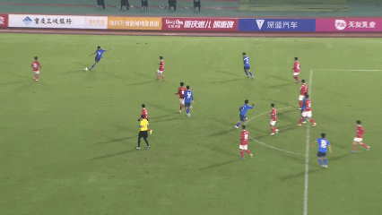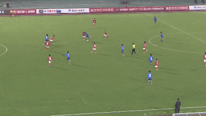 第45分钟,5号球衣揭阳洋弧顶推射,门将扑球脱手,大渡口反超比分。