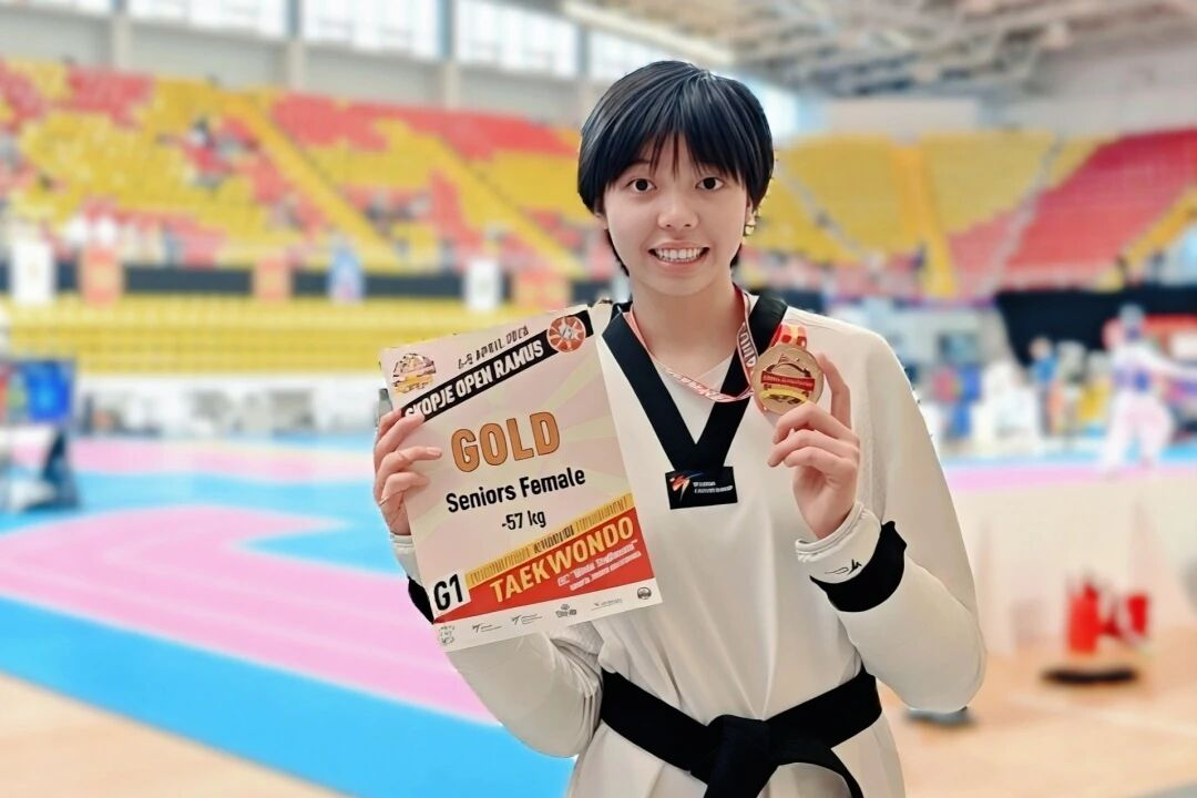 近日,斯科普里跆拳道公开赛在北马其顿首都举行。由渝中区输送至市运动技术学院重竞技系跆拳道运动员徐一诺,在女子57公斤级比赛中勇夺金牌,并获10个奥运积分,为备战洛杉矶奥运会进一步夯实了基础。(供稿人:张贵琼、张芷聿)