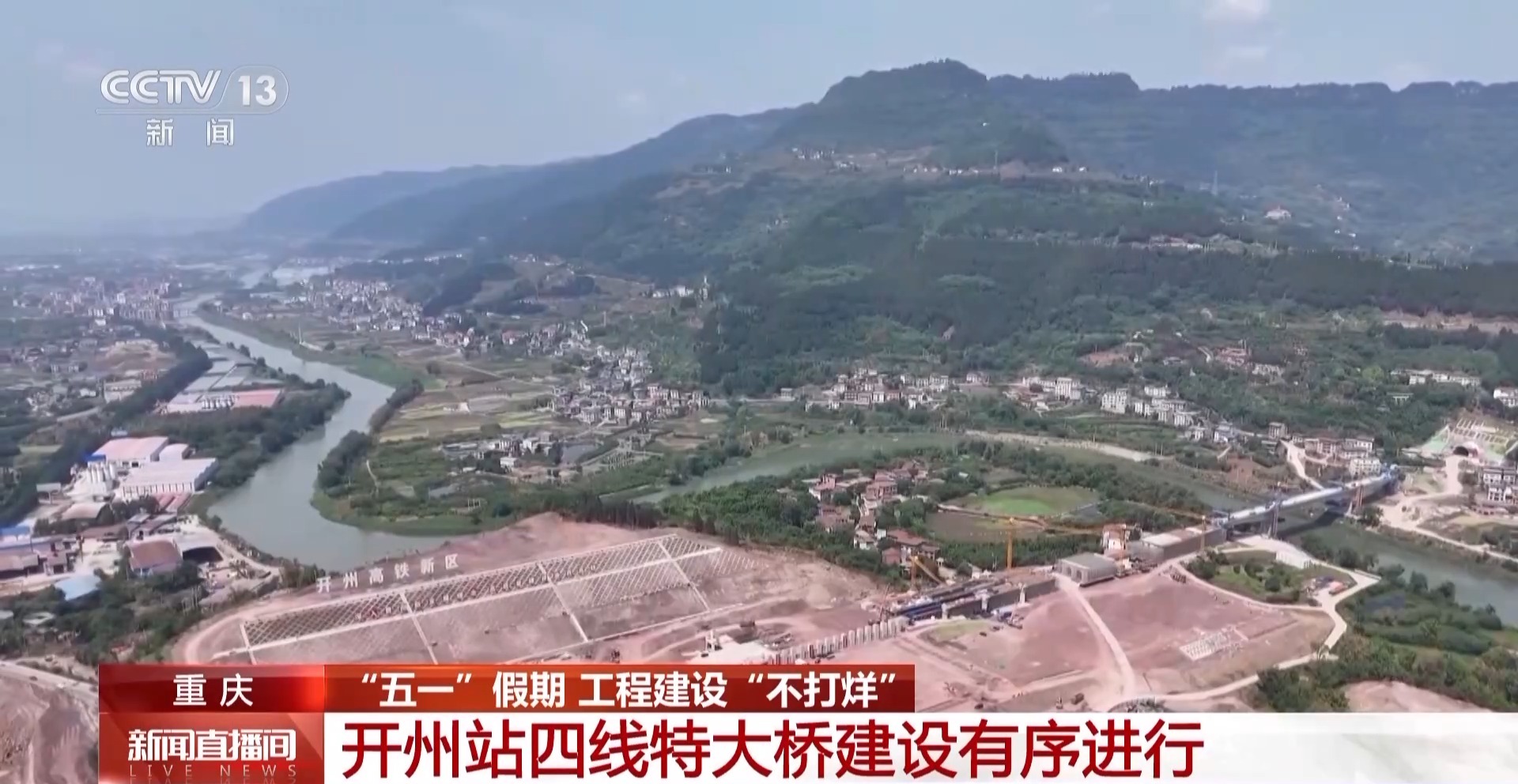 在重庆市开州区的开州站四线特大桥施工现场,塔吊林立、机器轰鸣,项目建设有序进行。开州站四线特大桥全长635米,是联通西渝高铁开州站的重要枢纽工程,也是标段重难点工程之一。目前,大桥已完成总进度的60%。